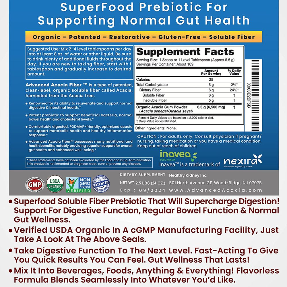 Kidney Restore Advanced Acacia Fiber: Superfood Prebiotic for Supporting Normal Gut Health, 1.5 Lb. Jar - 1.5 Lbs is backordered and will ship as soon as it is back in stock.