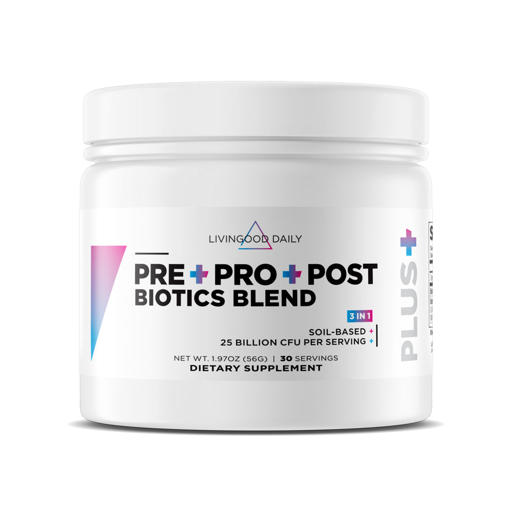 Three COMPLETE Blend โ Livingood Daily Pre-Pro-Post Biotics Blend is a mixture of PLANT-BASED, fiber prebiotic from blue agave plus SOIL-BASED probiotics for digestive health that contains 25 Billion CFU/Serving and a very UNIQUE post biotics that contains 11 Billion Cells/Serving.