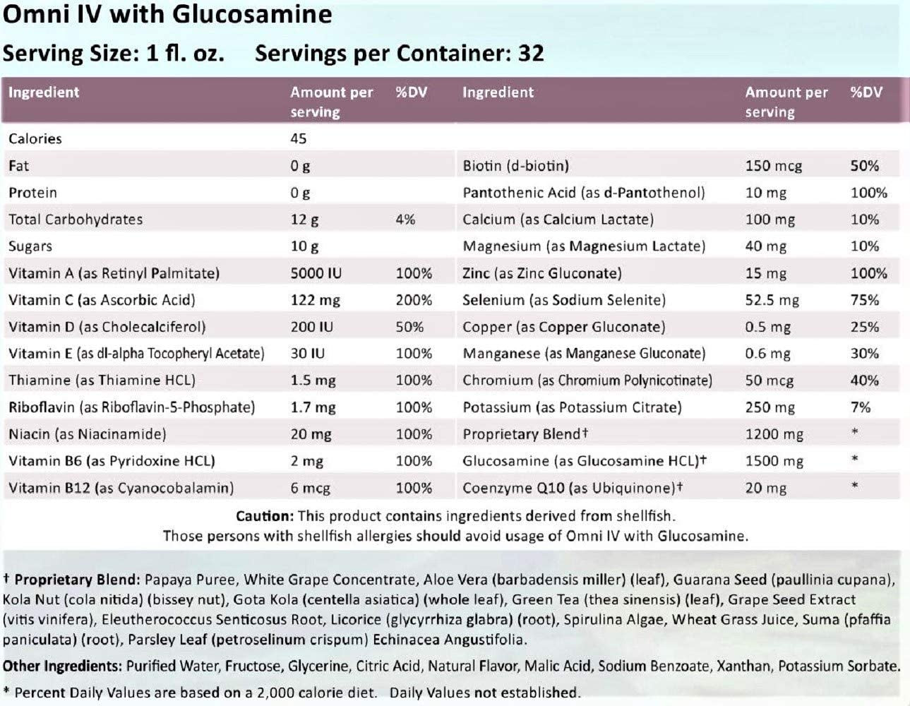 - 1 - Omni 4 Liquid Concentrate w/Glucosamine (#1201) - Omni 4 is a water soluble liquid vitamin supplement