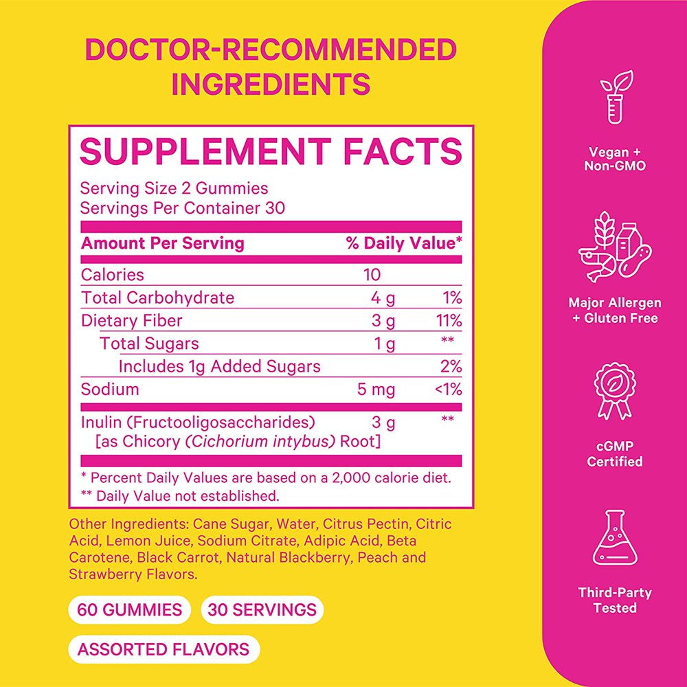 Pink Stork Fiber Gummies: Prebiotic Inulin Supplement for Women, 60