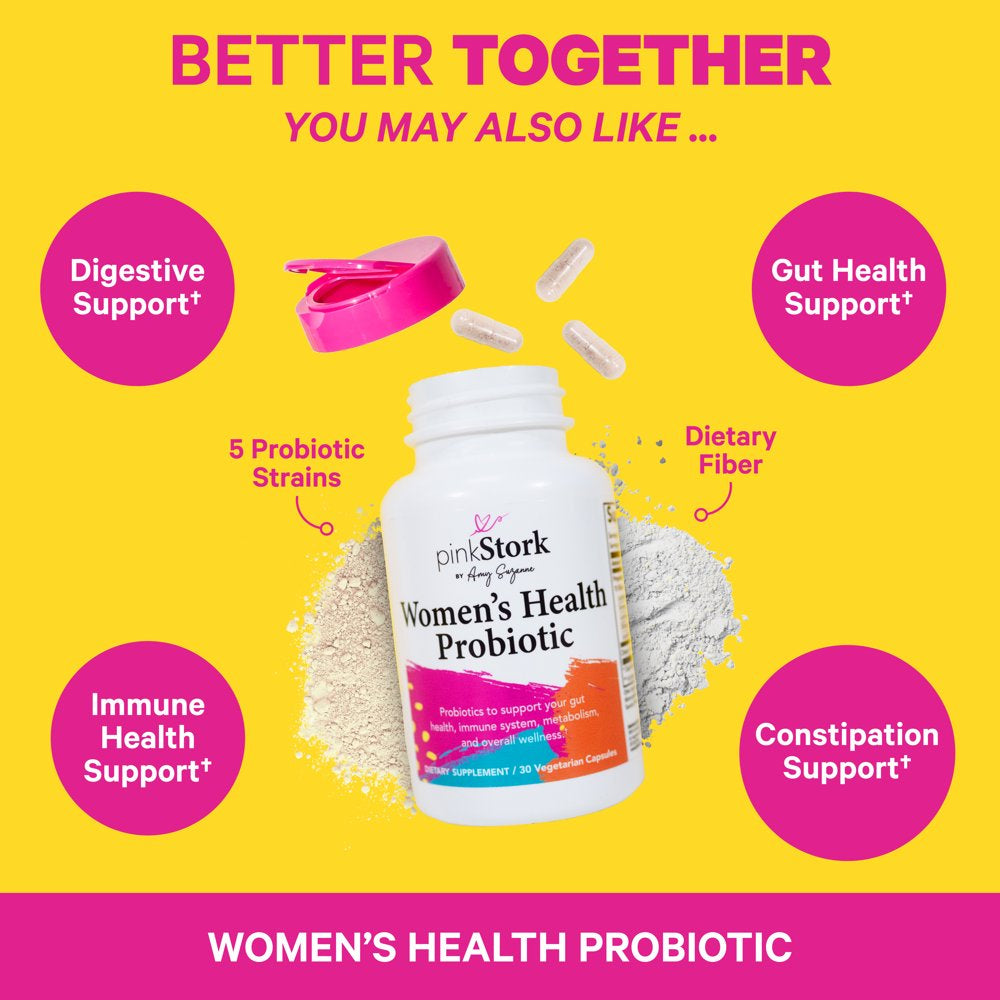 Pink Stork Fiber Gummies contain natural Inulin to support digestive health. Inulin is a soluble fiber that helps nourish gut microbes, can support digestive wellness, allows the body to absorb important micronutrients, and supports a healthy appetite. With continued use, Inulin stays in the bowel to allow beneficial bacteria to grow, supporting healthy and regular bowel movements. Fiber is often used as a natural stool softener. For ultimate support, use with Pink Stork probiotics and Total Women’s Multivitamin. Take 2 gummies daily, 60 vegetarian gummies total, 30-day supply. These statements have not been evaluated by the Food and Drug Administration. This product is not intended to diagnose, treat, cure, or prevent any disease.