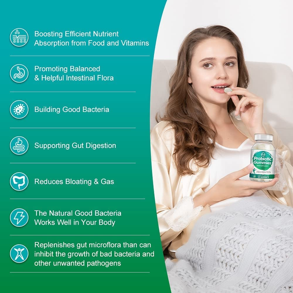 • 【Healthy Lifestyle】Probiotic Gummies for men and women, which can offers one of the most beneficial probiotics, which is a healthy way to improves digestion, supports immune system function.