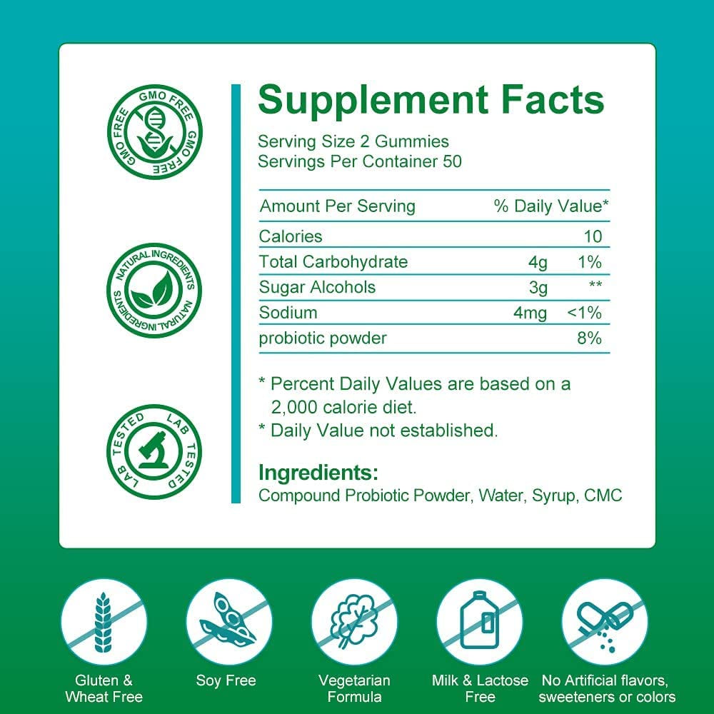 • 【Vegetarian-friendly】Ingredients: Compound probiotic powder, Water, Syrup,CMC. No refrigeration needed, these are sealed and packaged, NO mold. NOT contained : gluten, wheat, peanuts, soy, eggs, fish or GMOs.