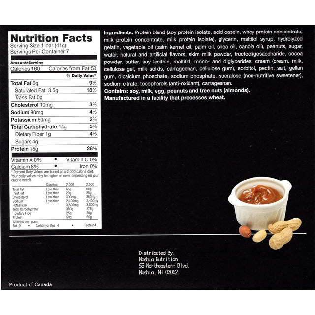 You have a nutrition goal, and we're here to help you to reach them. Nashua Nutrition protein bars are a great on-the-go option to keep you going throughout your day, wherever that takes you. This Caramel Nut High Protein Bar has a delicious taste; combined with a toffee caramel layer on peanuts, it’s a nutrition bar that fits your daily lifestyle. This high-fiber snack bar might remind you of your favorite campfire treat, but it packs much more nutrition into each 160-calorie serving. These single-serving meal replacement bars deliver 15g of protein, major vitamins & minerals, 6g of saturated fat, and a healthy 1g of fiber in each serving. We’re here to help you reach your weight loss goals, enjoy our delicious products today! Each nutritious protein bar is individually wrapped for easy convenience to enjoy at the gym, off the field, or on the go.