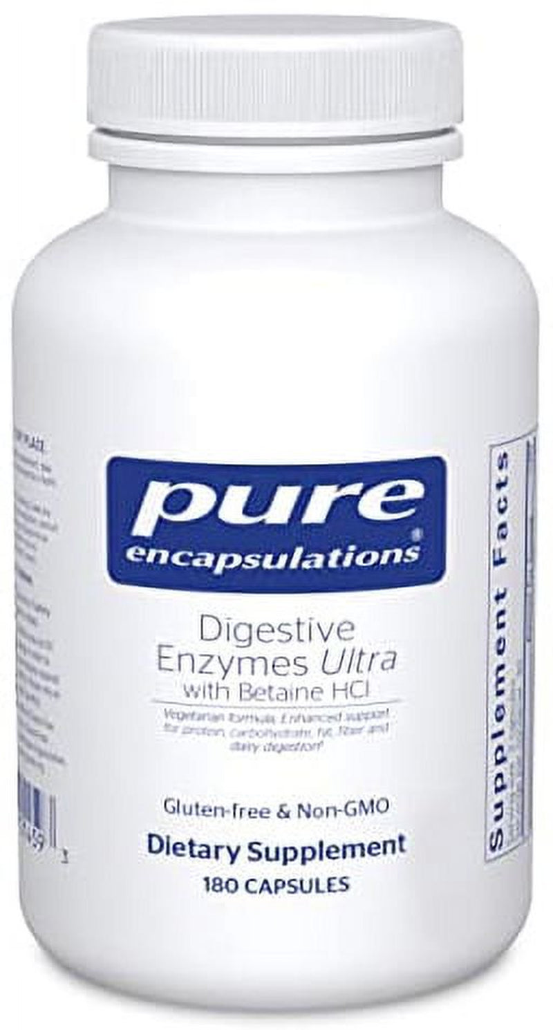Pure Encapsulations Digestive Enzymes Ultra with Betaine Hcl | Vegetarian Digestive Enzymes to Support Protein, Carbohydrate, Fat, Fiber, and Dairy Digestion* | 180 Capsules