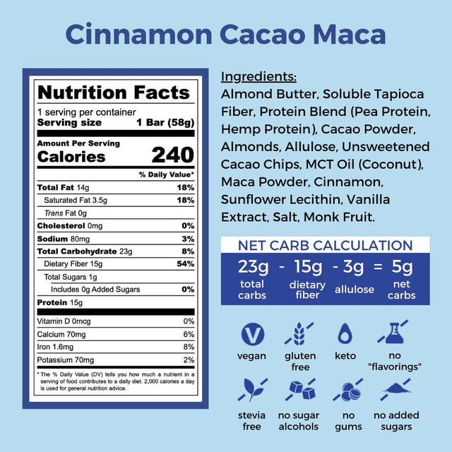 Resist Low Glycemic Protein Bars - Cinnamon Cacao Maca | Clinically-Backed, High Fiber Keto Vegan Bars, Low Sugar, Gluten-Free, Low Carb, No Stevia, No Sugar Alcohols (58G, 12 Count) - Cinnamon Cacao Maca / 12 Bars is backordered and will ship as soon as it is back in stock.