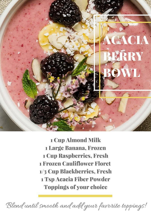 The fibers found in certain foods like acacia powder are considered prebiotics and they do much more than keep us regular-they also feed our miraculous microbiome. Acacia fiber is arguably the most powerful food-based prebiotic in existence and has been clinically shown to nurture the beneficial bacteria in the digestive tract, discourage the growth of unfriendly bacteria and yeasts, and reinforce the gut barrier to promote optimal digestive, metabolic, and immune function.