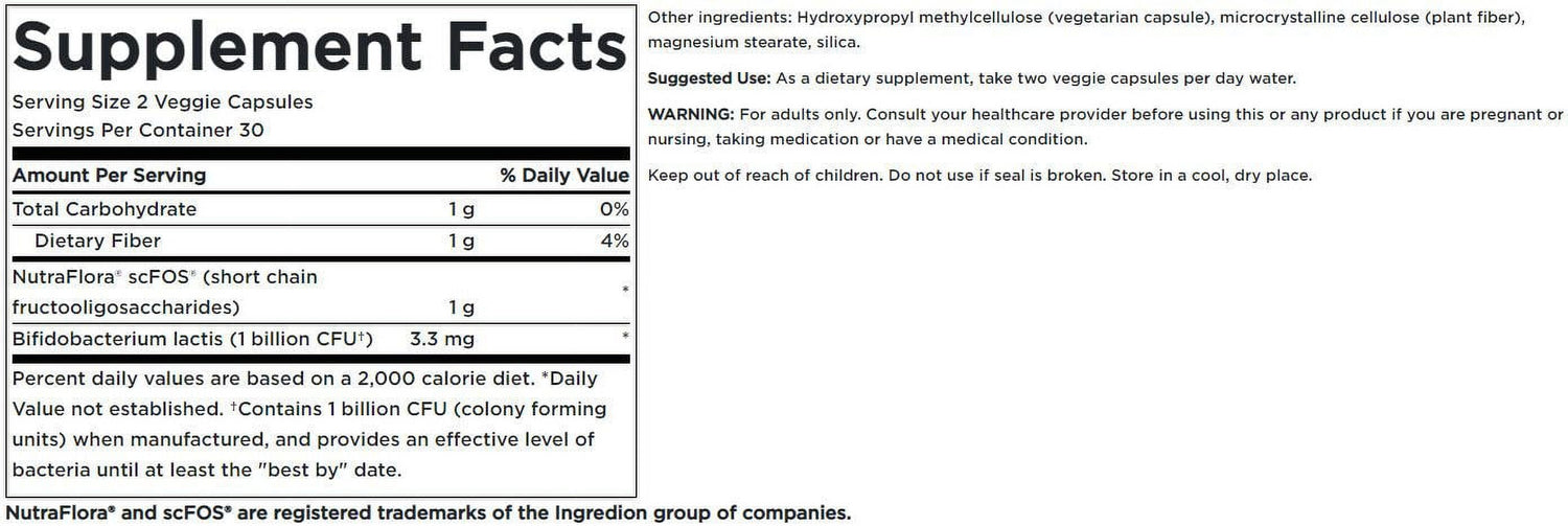 Swanson Probiotic+ Prebiotic Fiber helps support digestive health and promote a healthy microflora. Your digestive system has a huge impact on your overall health. One of the easiest ways to nourish your digestive system is with a probiotic. Probiotics are friendly bacteria that nourish your gut and digestive system. They help break down food and support immune system health. Prebiotics are food for the probiotics to help them survive and multiply in your body. A healthier inside means a happier outside. Swanson Probiotic+ Prebiotic Fiber for Friendly Flora Support contains 1 billion CFU of Bifidobacterium lactis , a species that has been well-researched for promoting intestinal and immune health. Along with friendly bacteria, this supplement also contains the prebiotic fiber NutraFlora(R). The fructooligosaccharides (FOS) in NutraFlora help create a favorable environment for the probiotics so they can thrive. It's the perfect probiotic and prebiotic supplement.