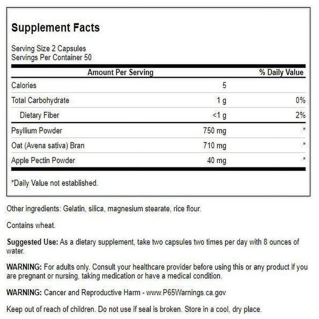 Do the right thing for your heart and your colon--make Swanson Premium Tri-Fiber Complex part of your daily regimen. A good daily supply of dietary fiber is crucial for cardiovascular health and for maintaining normal bowel function. Unfortunately, most of us don't get enough fiber in our regular diet. That's where Tri-Fiber Complex can help. This formula makes it easy to get the fiber you need every day by combining psyllium, oat bran and apple pectin in convenient capsules.