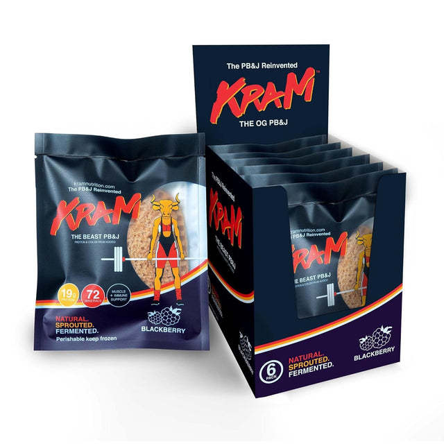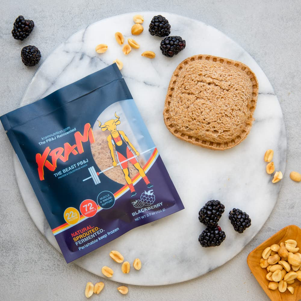 The Beast by Kram Nutrition Organic Whole Wheat Peanut Butter & Sweet Blackberry Jelly Sandwiches - High WHEY Protein - Mineral Complex - Electrolytes - Fiber - Low Carb - No Sugar - 12 Count is backordered and will ship as soon as it is back in stock.