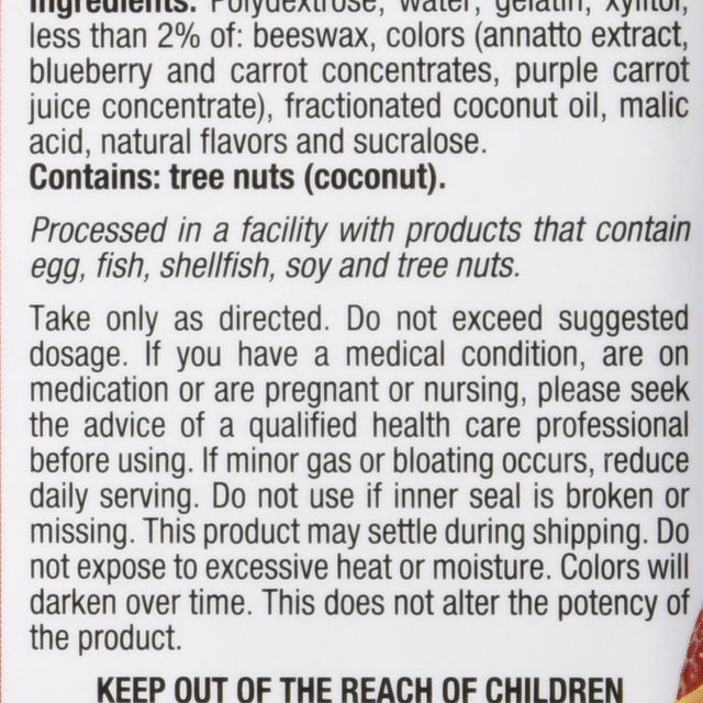 vitafusion Fiber Well gummies help you get the fiber you may need to support digestive health with 5 grams of prebiotic fiber in each delicious, sugar-free gummy serving[1]. Vitafusion Fiber Well gummies come in three delicious natural fruit flavors- peach, strawberry, and blackberry, so you can enjoy your fiber. At vitafusion, we believe taste and nutrition can be fused together to deliver the best vitamin experience, ensuring it’s an easy and delicious part of your day. For over 12 years, we’ve been helping people to live happy and healthy lives with our gummy vitamins and supplements. Anything is possible when great nutrition is your foundation. Take a fruitful step toward a healthier, happier world with America’s #1 gummy vitamin brand. Vitamin Better! [1] These statements have not been evaluated by the Food and Drug Administration. This product is not intended to diagnose, treat, cure or prevent any disease.
