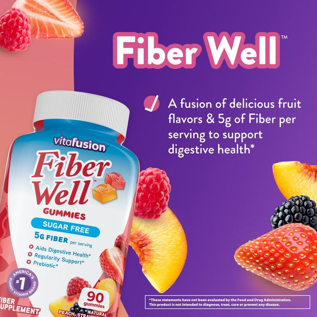 Vitafusion Fiber Well Sugar Free Fiber Supplement Gummies, Fruit Flavored, 90 Count