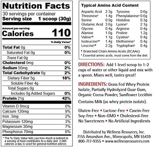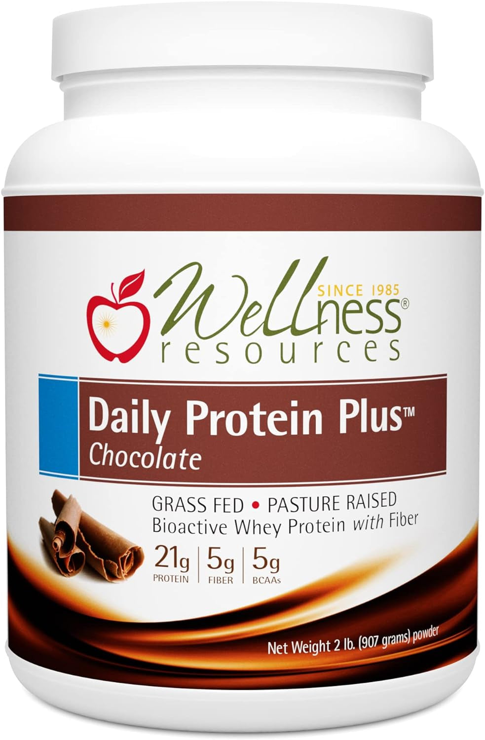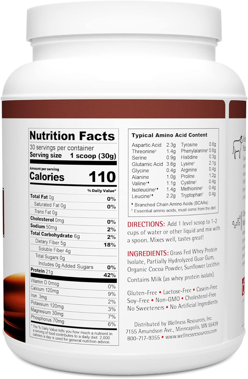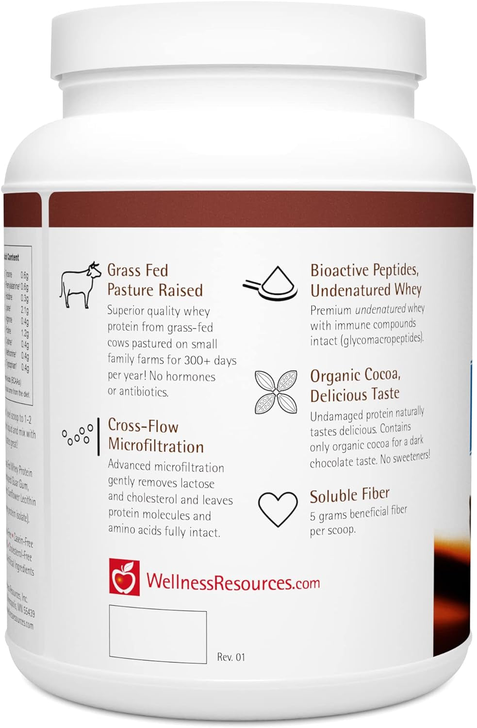 Wellness Resources Daily Protein plus Chocolate - Grass Fed, Pasture Raised Bioactive Whey Protein Isolate with Guar Fiber and Organic Cocoa - No Sweeteners, Soy-Free, Gluten-Free (2 Lb.)