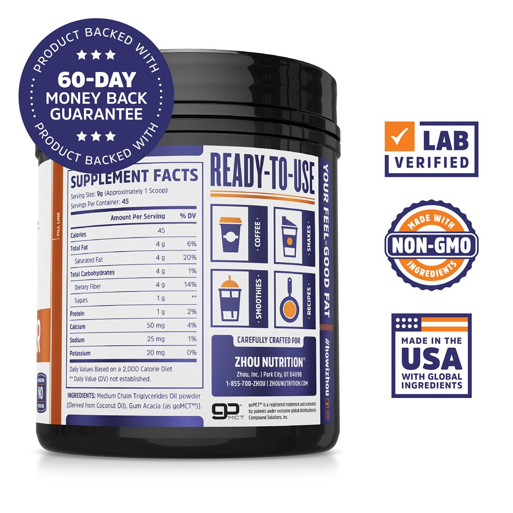 Zhou MCT Powder with Prebiotic Acacia Fiber | Zero Net Carbs | Keto Friendly Fat & Fiber Source | Easy to Digest | 45 Servings, 14.5 Oz is backordered and will ship as soon as it is back in stock.