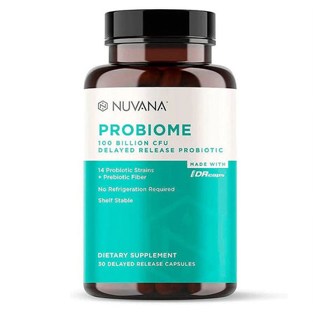 Nuvana Probiome | 100 Billion CFU | 14 Probiotic Strains with Prebiotic Fiber for Adult Men & Women