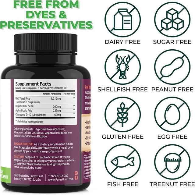 Forest Leaf Red Yeast Rice Supplement with COQ 10, Flaxseed & Alpha Lipoic Acid, 90 Count