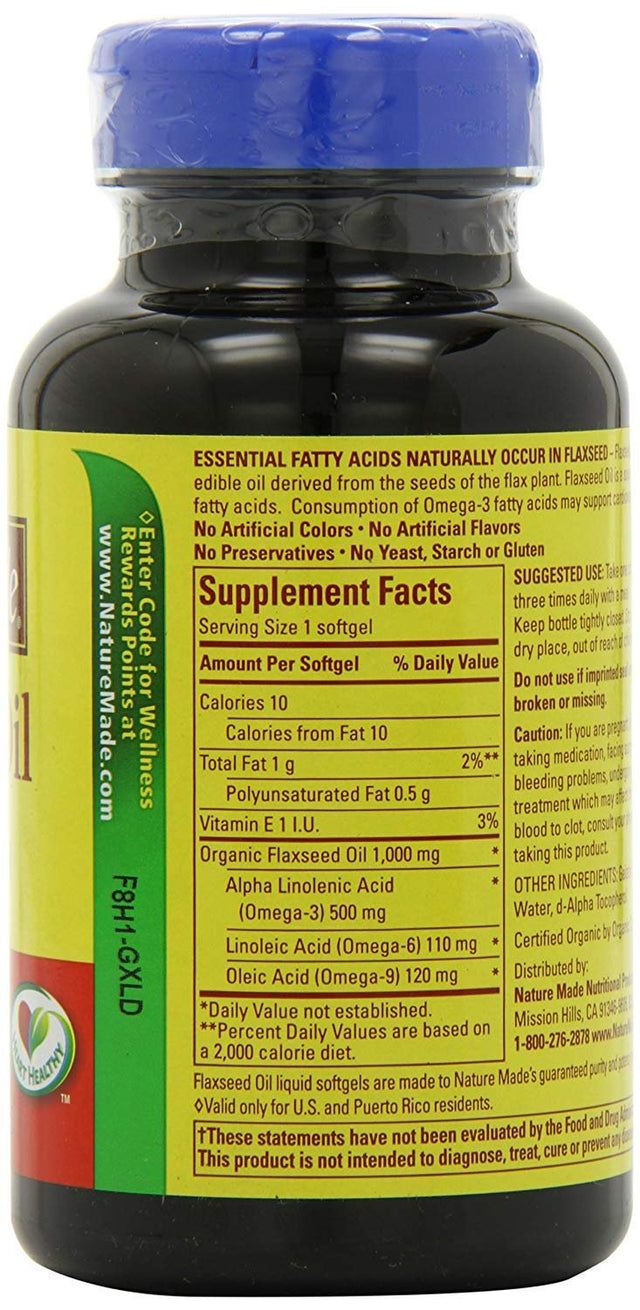 • Nature Made Flaxseed Oil 1000 mg Softgels 100 Each