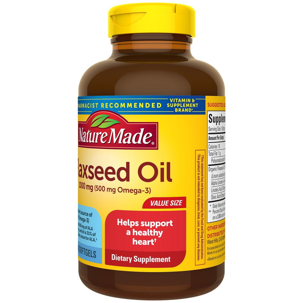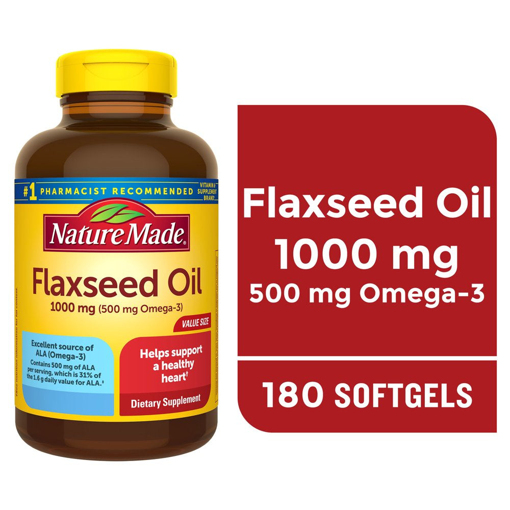 • Heart health support supplement: contains one 180 count bottle of Nature Made Flaxseed Oil 1000 mg Softgels for a 180-day supply