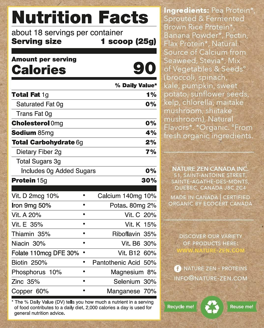 - HEALTHY : At Nature Zen, we choose the purest ingredients to offer you more than just fuel for your body; Experience the benefits of this extraordinary blend, where protein-rich goodness meets exceptional taste. Protein from yellow pea, brown rice and flaxseed offer you a complete amino-acid profile in perfect synergy, creating a clean organic blend that enhances your overall well-being.