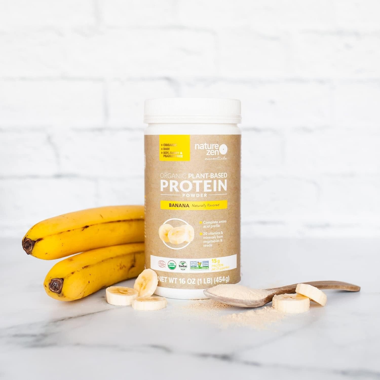 Nature Zen Organic Vegan Protein Powder From, Banana, Organic Rice and Pea Protein, Flaxseed Protein, Dairy Free, Soy Free, Gluten Free, Naturally Non GMO, Kosher, Halal, 18 Servings, 1Lb