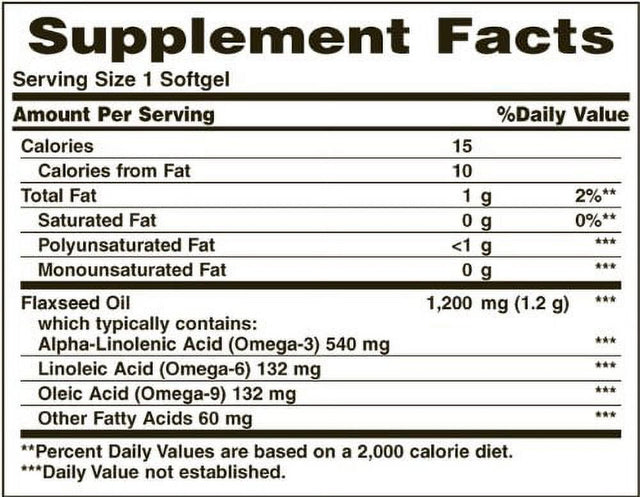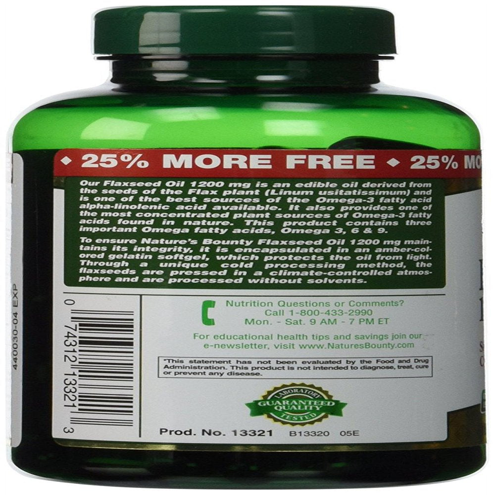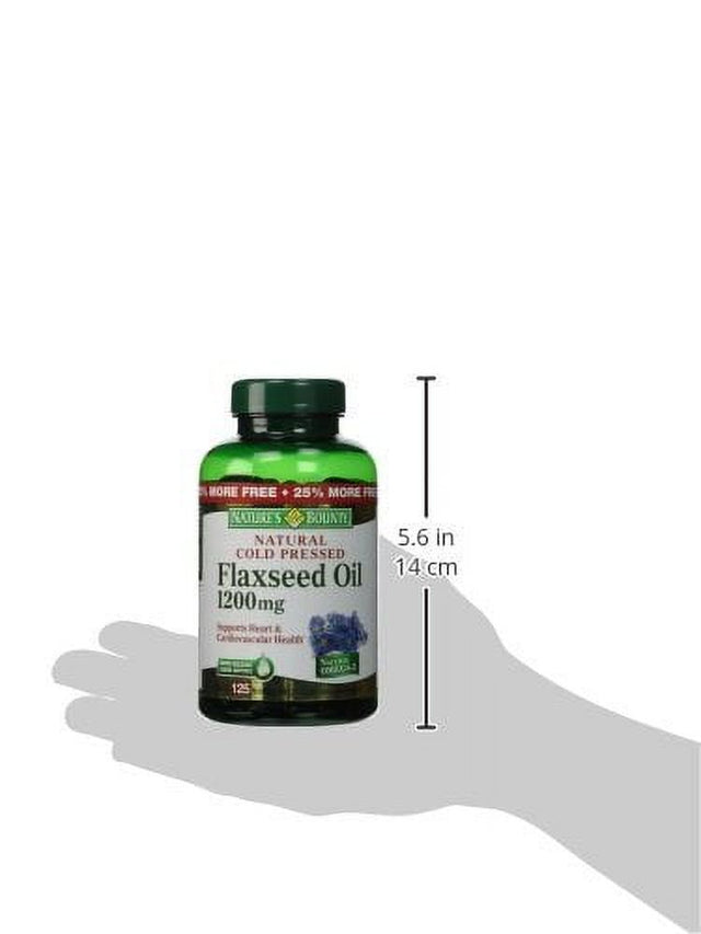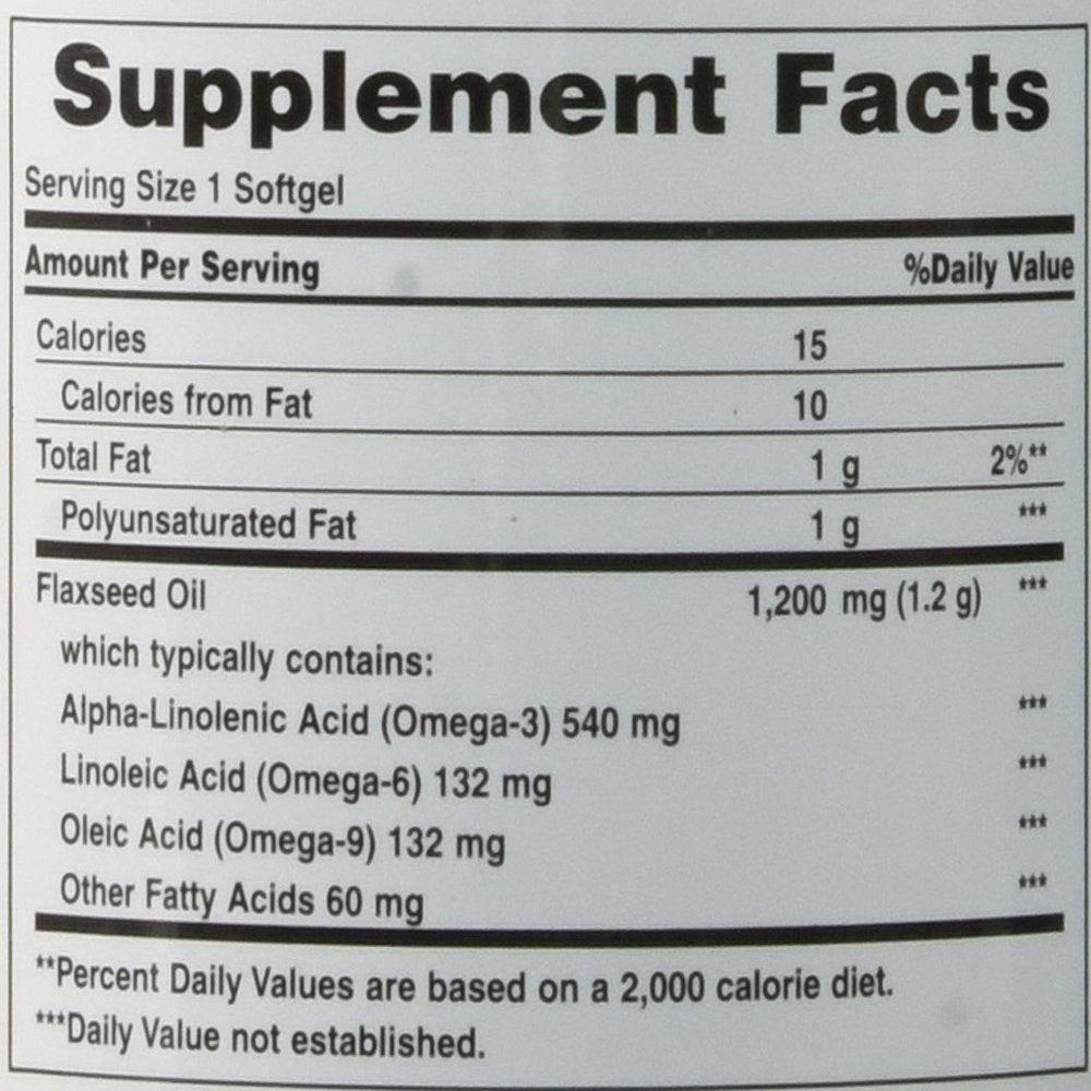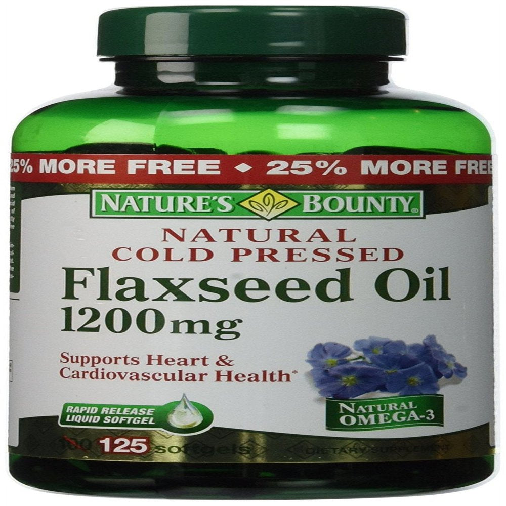 Nature's Bounty Flax Seed Oil and Omega 3 Herbal Health Supplement, Supports Heart and Cardiovascular Health, 1200 milligrams, 125 Softgels Supports Cardiovascular Health | 540mg of Omega 3 | Natural Cold Pressed | Contains natural omega 3 | Promotes heart and cardiovascular health | Natural source of heart healthy nutrients Flaxseed Oil is one of the premium sources of the essential fatty acid Alpha Linolenic Acid (Omega-3), and also contains Linoleic Acid (Omega-6). Fatty acids contribute to heart health and help provide an energy source for the body. Flaxseed oil helps provide nutrients for the well-being of the body.