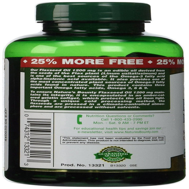 Nature'S Bounty Natural Cold Pressed Flaxseed Oil Softgels, 1200Mg, 125 Count