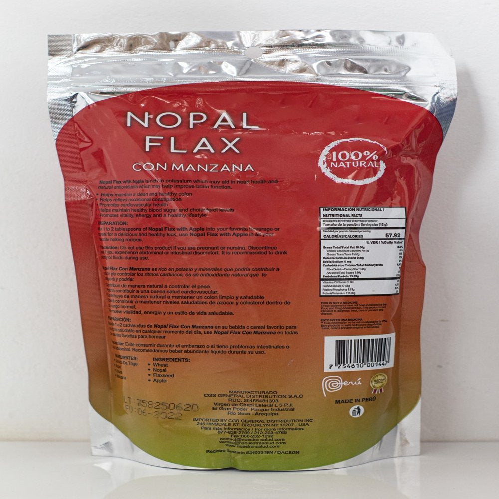 Nopal Flax Manzana Linaza Plus Apple Flaxseed Fiber Dietary Supplement Powder Colon Cleanser Digestive Aid Weight Loss Aid. Nopal Flax combines the highest quality of flaxseed, cactus (nopal), senna and wheat bran along with a touch of lucuma to produce an exceptionally nutritious and healthy herbal blend. Helps Maintain a clean and healthy colon Promotes vitality and healthy lifestyle Fiber rich Omega 3,6,9