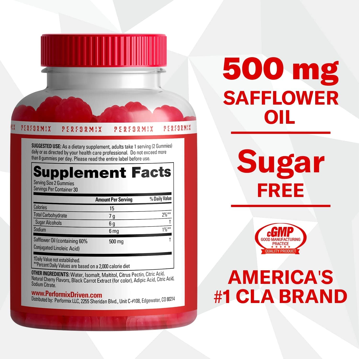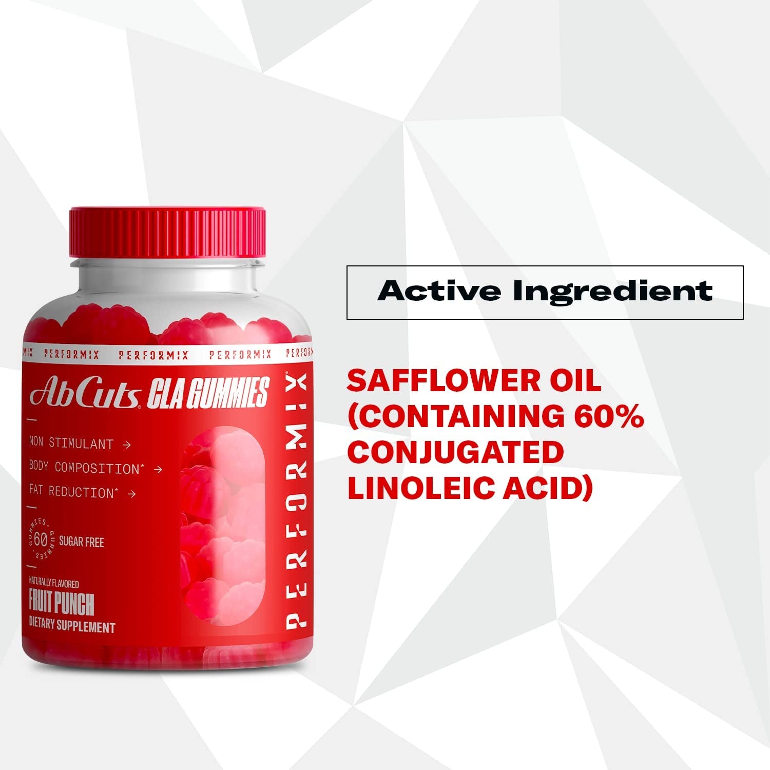 PERFORMIX Abcuts CLA Gummies - 60 Gummies, Fruit Punch - Non-Stimulant, Body Composition and Fat Reduction - Contains Omega 3, Flaxseed Oil & Vitamin E Sugar Free Healthy Metabolism