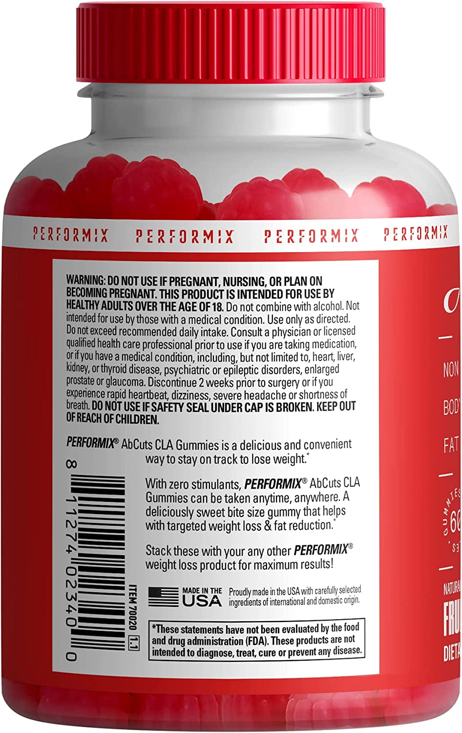 - AbCuts CLA Gummies: Performix AbCuts CLA Gummies are a delicious and convenient way to stay on track with your weight goals. Stack these with any other PERFORMIX weight management products for maximum results. Sugar-free, naturally-flavored Fruit Punch taste. Take 1 serving (2 gummies) daily or as directed by your health care professional. Do not exceed 8 gummies per day. Includes 30 servings (60 gummies).