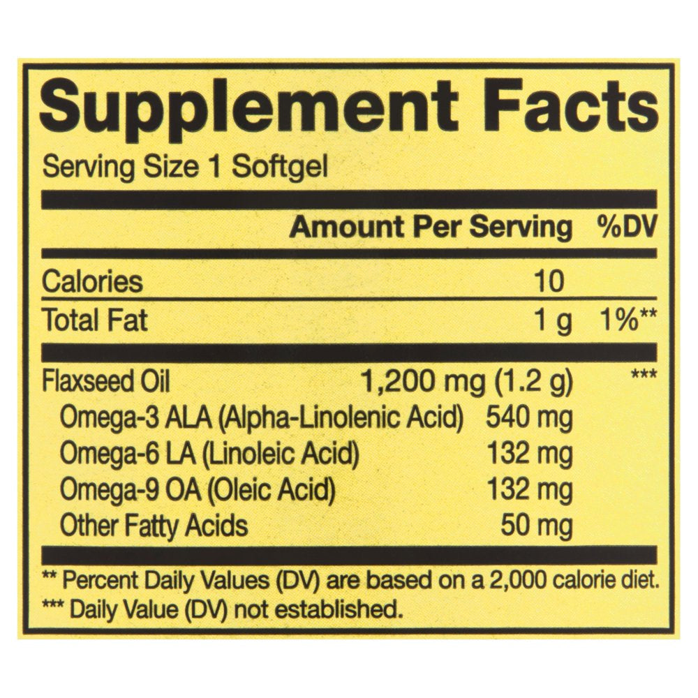 - 1, 200 mg cold-pressed flaxseed oil per soft gel