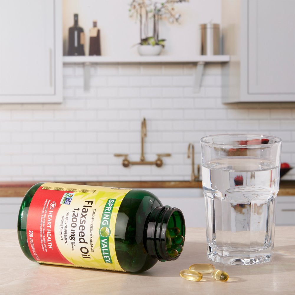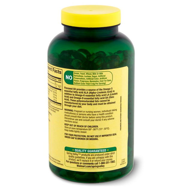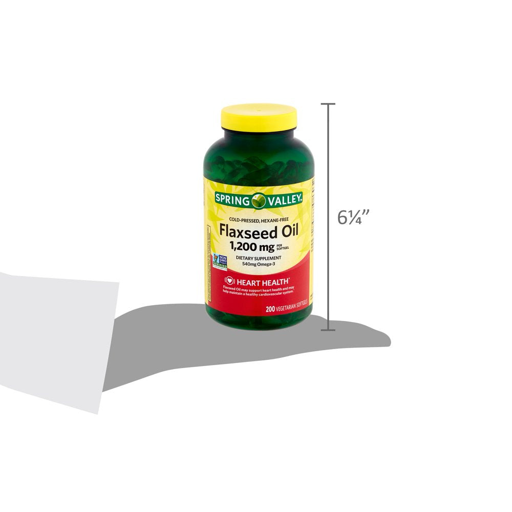 Heart Health flaxseed oil may support heart health and may help maintain a healthy cardiovascular system. No Artificial color, artificial flavor, fragrance, benzoates, coal tar dyes or sodium (less than 5 mg per serving) Flaxseed Oil provides a source of the omega-3 essential fatty acid ALA (Alpha-Linolenic Acid) in addition to omega-6 essential fatty acid LA (Linoleic Acid) and omega-9 essential fatty acid OA (Oleic Acid). These statements have not been evaluated by the Food and Drug Administration. This product is not intended to diagnose, treat, cure or prevent any disease. Support your heart health with Spring Valley flaxseed oil dietary supplement, 1, 200 mg. Flaxseed oil provides a source of the essential omega-3, omega-6, and omega-9 fatty acids that cannot be manufactured by the body and must be obtained through your diet. The suggested adult dosage is simply one soft gel three times daily, preferably with meals as a dietary supplement. Spring Valley understands living a healthy, balanced lifestyle is the key to being your best self. With an affordable range of products inspired by nature, Spring Valley supports your and your family's health and holistic well-being.