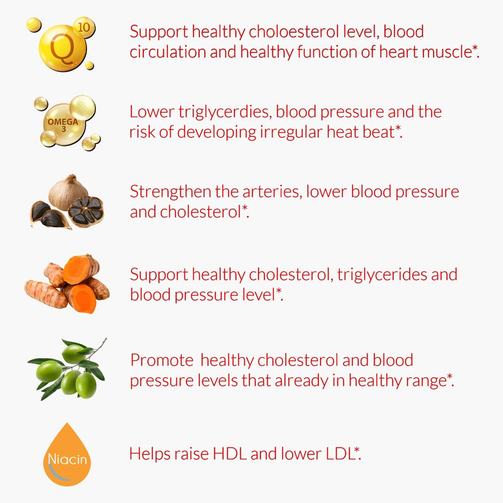 - HEART HEALTH SAVIOR: The synergy of 500 mg EPA & DHA from fish oil, 30 mg CoQ10, 50mg Turmeric and 50mg aged garlic extract supports triglycerides & cholesterol control, maintains healthy blood pressure and provides wholesome benefits for cardiovascular health.