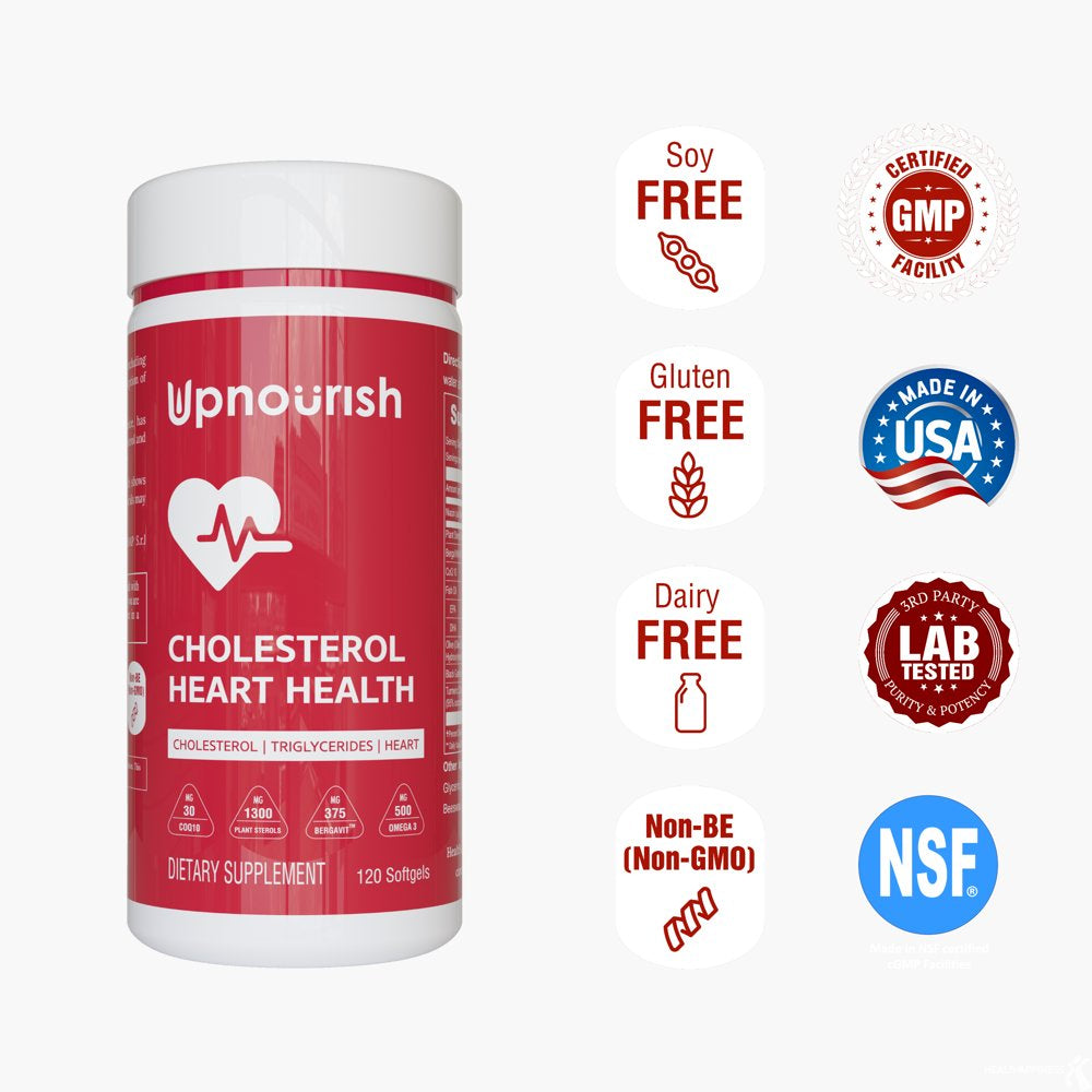 COMPLETE TRIGLYCERIDES & CHOLESTEROL SUPPLEMENTS: Are you struggling with high cholesterol and triglycerides? You have found it! UpNourish Cholesterol Heart Health supplement reduces endogenous cholesterol production and exogenous cholesterol absorption from foods. It also helps keep triglycerides at the bay with CoQ10, fish oil omega 3, turmeric and garlic extract.