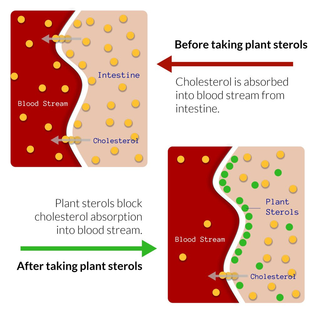 - PLANT STEROLS SUPPLEMENT FOR CHOLESTEROL: Plant sterols and stanols supplement effectively reduce absorption of cholesterol into blood stream. With 1300mg Plant sterols ester per serving, our product helps to support cholesterol health and powerful heart.