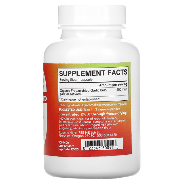 | Product Name | Eclectic Institute, Freeze Dried Fresh, Garlic, 550 mg, 120 Veg Caps |