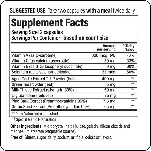 - Kyolic Detox and Anti-Aging: Blending our specially aged garlic with antioxidant powerhouses Green Tea, Milk Thistle, and Grape Seed, this supplement features antioxidant properties that aid in detoxification