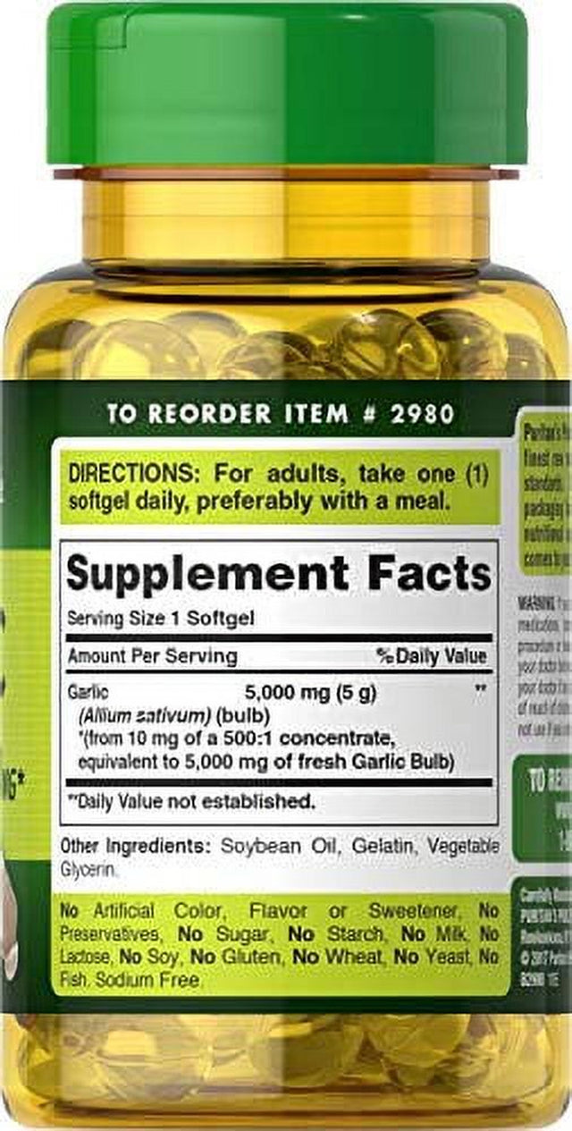 | Product Name | Puritan's Pride Garlic Oil 5000 mg-100 Rapid Release Softgels |
