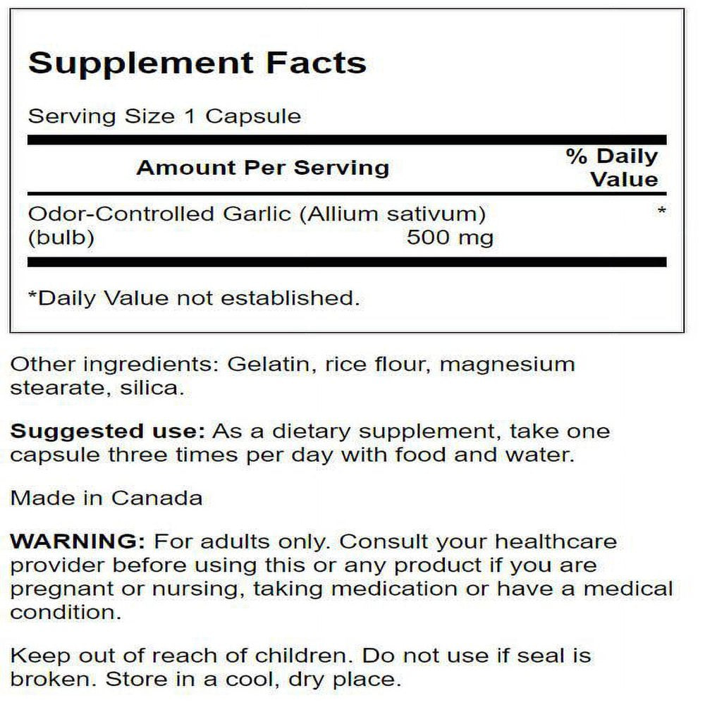 | Product Name | Swanson Odorless Garlic 500 mg 200 Caps 4 Pack |