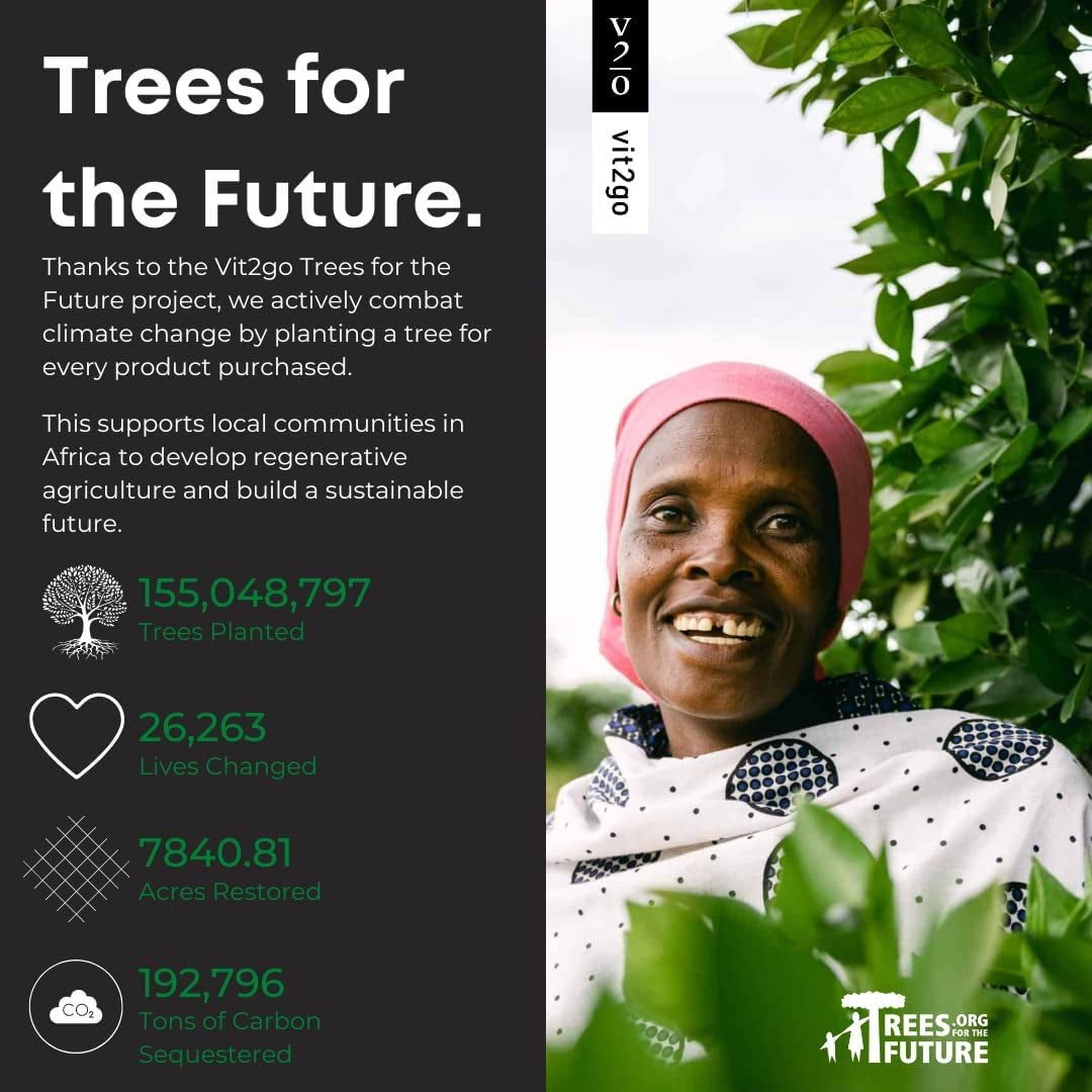 At Vit2go, we support the environment and the African future. For every product we sell, we plant a tree to slowly reforest local woodlands and promote sustainable agriculture. With your every purchase, you also help African communities and families generate stable income.