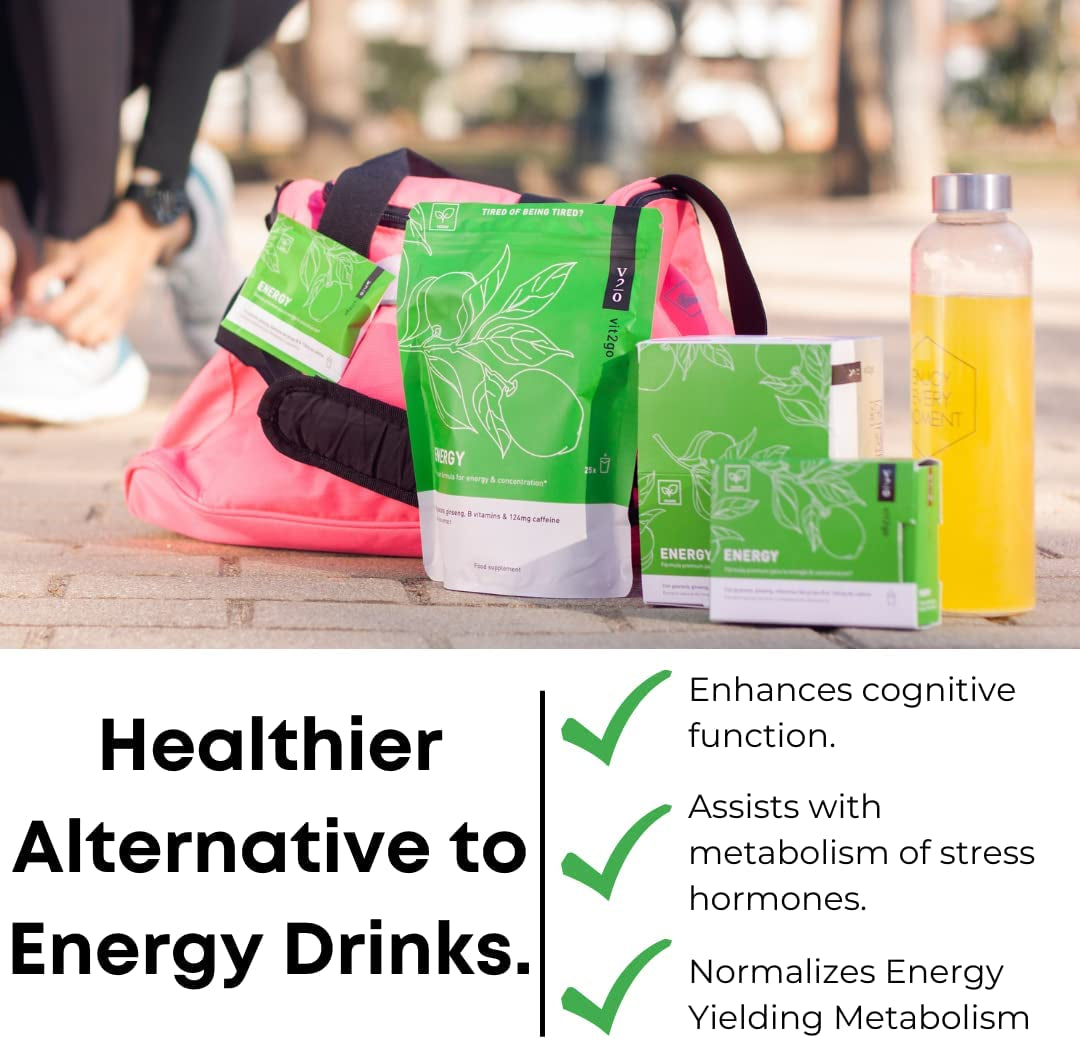 Energy Powder with Magnesium, Zinc, and B Vitamins | Contains 124Mg of Natural Caffeine from Ginseng and Guarana | Perfect for Naturally Enhancing Mental and Physical Performance, 30 Sachets