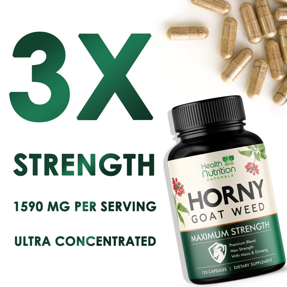 Extra Strength Horny Goat Extract for Men & Women - 1590Mg 3X Strength, Performance, Energy, Stamina with Maca, Saw Palmetto, Ginseng, L-Arginine & Tongkat Hornygoatweed Supplement - 120 Capsules