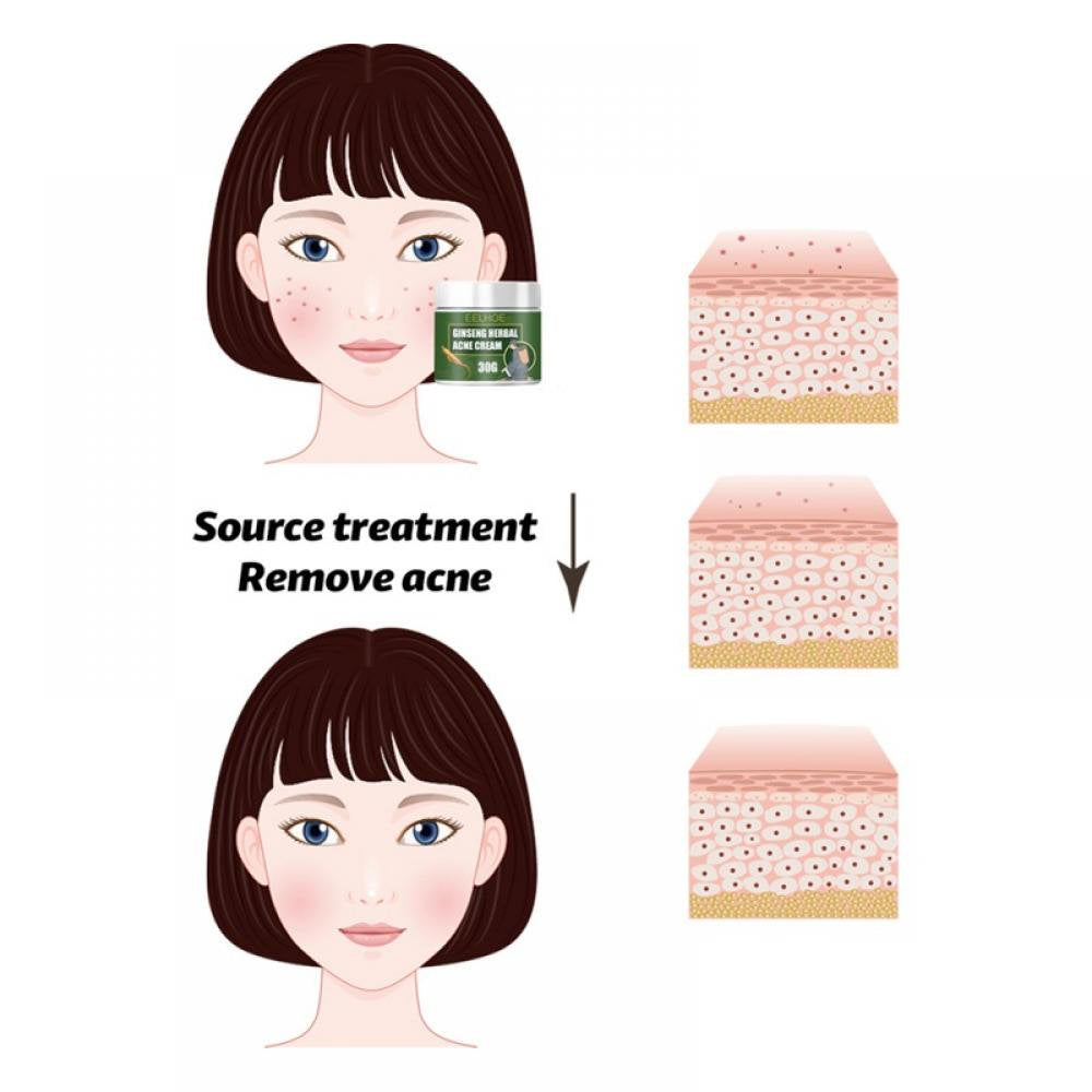 Ginseng Herb Anti-Acne Treatment Cream, Acne Removal, Fighting Breakouts, Spots, Cystic Acne with Natural Ingredients and Advanced Herbal Formula,50G