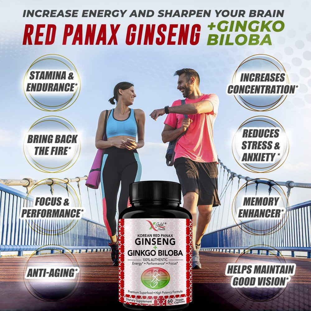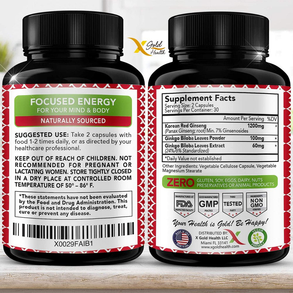- FOCUSED ENERGY FOR YOU MIND & BODY - Are you looking for something that gives you long-lasting energy? Our combination of Korean Red Panax Ginseng (1200mg) + Ginkgo Biloba Leaves Extract (60mg) and Ginkgo Biloba Leaves Powder (100mg) works synergistically together to produce focused energy that allows you to be your most productive self.
