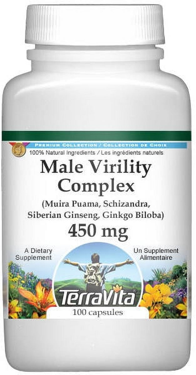 Take 1 capsule, 3 times daily, with meals. - TerraVita is an exclusive line of premium-quality, natural source products that use only the finest, purest and most potent ingredients found around the world. TerraVita is hallmarked by the highest possible standards of purity, potency, stability and freshness. All of our products are prepared with the highest elements of quality control, from raw materials through the entire manufacturing process, up to and including the mom - Male Virility Complex - Muira Puama, Schizandra, Siberian Ginseng, Ginkgo Biloba - 450 mg (100 capsules, ZIN: 511971): Male Virility Complex - Muira Puama, Schizandra, Siberian Ginseng, Ginkgo Biloba - 450 mg