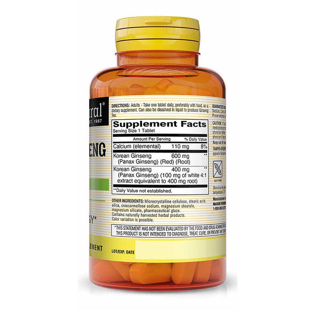 Mason Natural Korean Mason Ginseng 1000Mg: Boosts Energy, Endurance, and Vitality - 60 Tablets