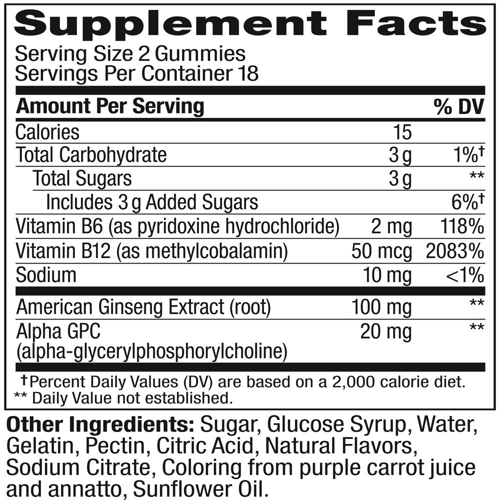 OLLY Laser Focus Gummy, Ginseng, Alpha GPC, B Vitamin, Supplement, Berry Tangerine, 36 Ct is backordered and will ship as soon as it is back in stock.