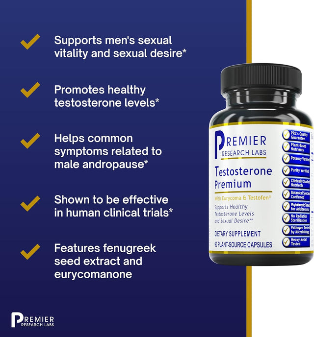 Premier Research Labs Testosterone Premium - for Vitality & Desire - with Saw Palmetto Berry, Maca & American Ginseng - Male Andropause Support - Vegan -90 Plant-Source Capsules