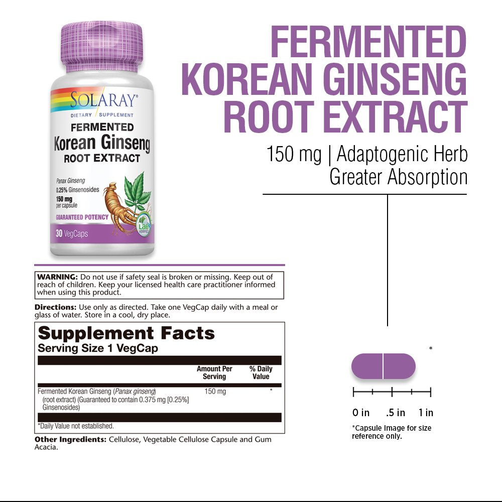 | Product Name | Solaray Fermented Korean Ginseng Root Extract | Healthy Stress, Energy & Physical Endurance Support | Vegan, Non-GMO | 30 VegCaps |