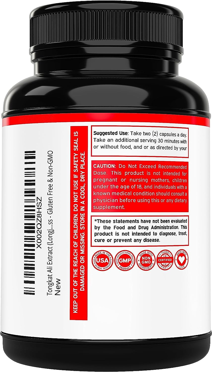 - MANUFACTURED IN A GMP CERTIFIED FACILITY - No gluten, no wheat, no dairy, no sugar, no soy, and no yeast. Our Tongkat Ali capsules are GMP compliant to ensure premium quality. Our supplements are always free from unnecessary additives or preservatives and are third-party independently tested.