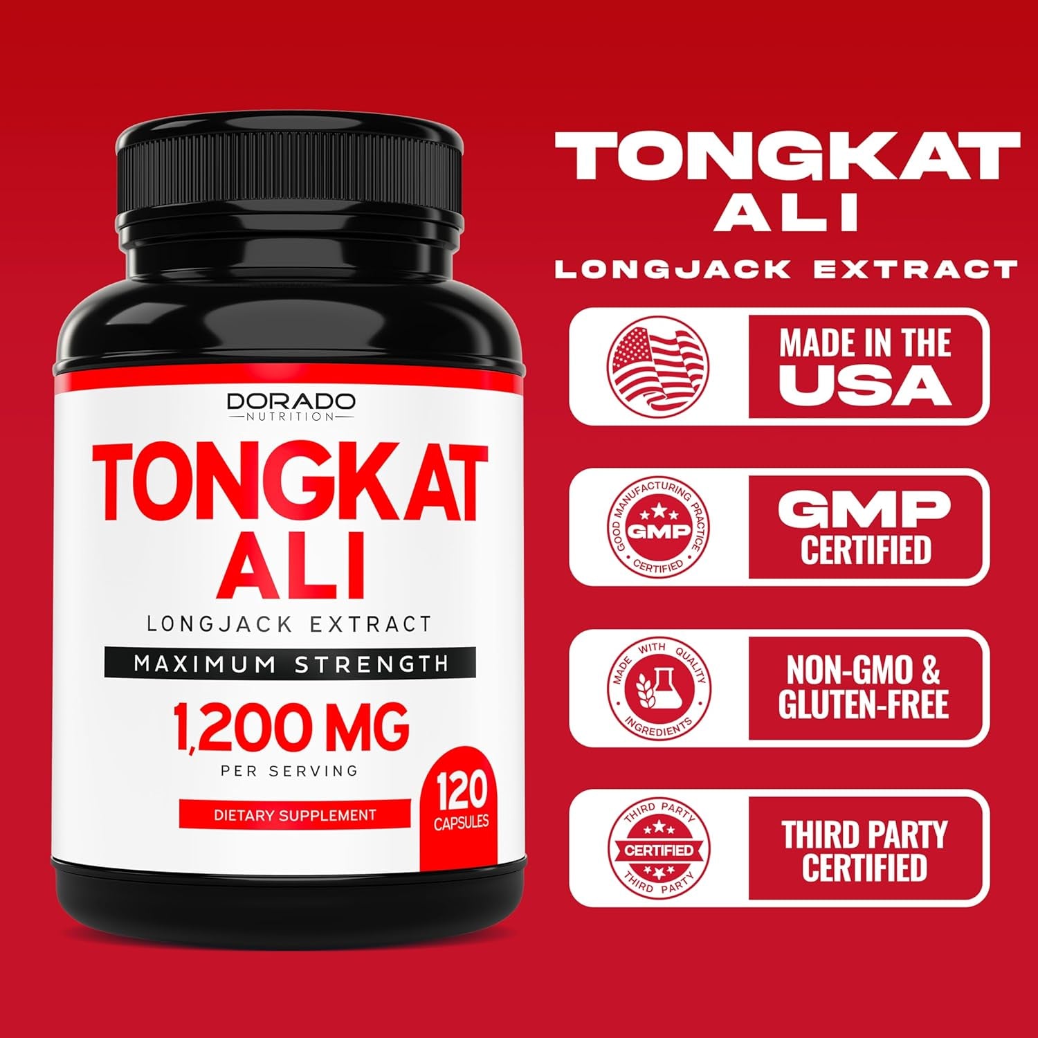 - MADE IN THE USA - Dorado Nutrition is proudly a 100% American owned company creating jobs & better futures for all our employees & stakeholders. All of our supplements are manufactured in the USA! Our Tongkat Ali Complex capsules are made in the USA and safety tested for heavy metal and microbes in a state of the art facility.